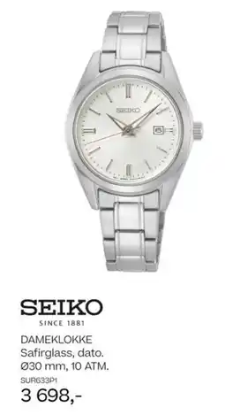 | Seiko dameklokke safirglass, quartz. 034 mm, 10 atm. | Bjørklund | 6 998,00 kr | 01 desember 2025 | 31 desember 2025 | |||