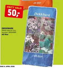Vi har samlet alle aktuelle Dekkbark tilbud og kampanjer som fortsatt gjelder i dag. Du kan finne disse gode kjøpene både i brosjyren og på nett. Besøk Kundeavisogtilbud.no og oppdag det billigste Dekkbark tilbudet, slik at du kan spare penger på ditt neste kjøp. Her finner du også informasjon om hvor du kan få Dekkbark til lavest pris, sammen med adresseinformasjon og kontaktdata for utsalgsstedet. Hvis du ønsker å lese vilkår, betingelser eller informasjon om gratis levering, kan du besøke den generelle informasjonssiden for butikken.