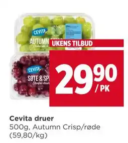 | 2 | Cevita druer 500 g | Meny | 29,90 kr | 19 januar 2026 | 24 januar 2026 | Se tilbudet | |||