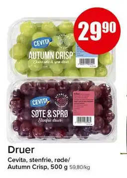 | 4 | GRØNNE/RØDE DRUER 500 g | Kiwi | 29,90 kr | 06 april 2026 | 12 april 2026 | Se tilbudet | |||