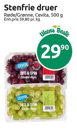| CEVITA DRUER 500 g | Meny | 29,90 kr | 23 mars 2026 | 04 april 2026 |