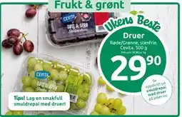 | Grønne og røde druer i beger 500 g | Bunnpris | 30,00 kr | 30 mars 2026 | 06 april 2026 | |||