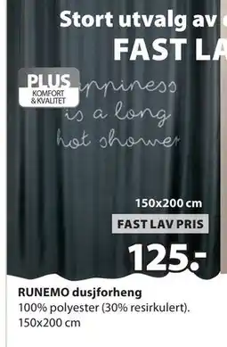 | RUNEMO dusjforheng 1 stk | JYSK | 125,00 kr | 13 april 2026 | 18 april 2026 | |||