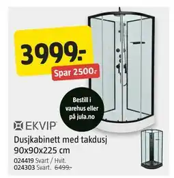 | EKVIP Svart/hvit Dusjkabinett 90x90x225 cm | Jula | 3 999,00 kr | 30 august 2024 | 19 september 2024 | |||