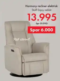 | 1 | Harmony recliner elektrisk 1 stk | Fagmøbler | 19 995,00 kr | 13 995,00 kr | Spar 6000.00 kr. | 01 januar 2026 | 31 januar 2026 | Se tilbudet | |