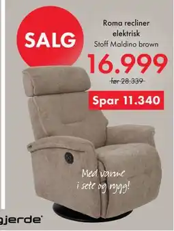 | 2 | Roma recliner elektrisk 1 stk | Fagmøbler | 28 339,00 kr | 16 999,00 kr | Spar 11340.00 kr. | 01 januar 2026 | 31 januar 2026 | Se tilbudet | |