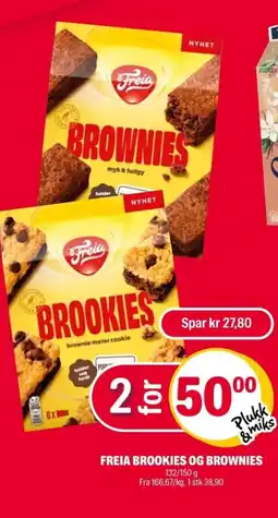 | Freia brookies og brownies 132/150 g | Coop Extra | 50,00 kr | 2 for 50 | 12 januar 2026 | 18 januar 2026 | ||