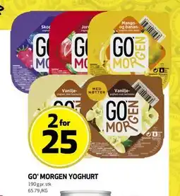 | 1 | GO' MORGEN YOGHURT 2 x 190 g | Bunnpris | 25,00 kr | 20 april 2026 | 26 april 2026 | Se tilbudet | |||