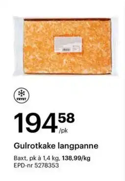 | Gulrotkake langpanne 1,4 kg | Storcash | 194,39 kr | 08 desember 2025 | 10 januar 2026 | |||
