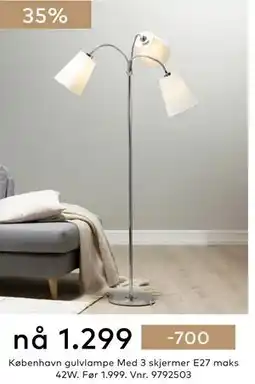 | 1 | København gulvlampe 1 stk | Skeidar | 1 999,00 kr | 1 299,00 kr | 700,00 kr Rabatt | 16 april 2026 | 17 mai 2026 | Se tilbudet | |