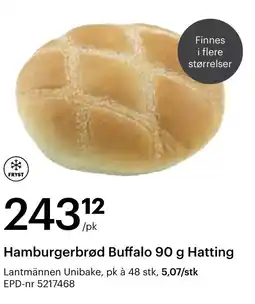 | Hamburgerbrød Brioche glanset Hatting 63 g | Storcash | 328,18 kr | 09 mars 2026 | 11 april 2026 | |||