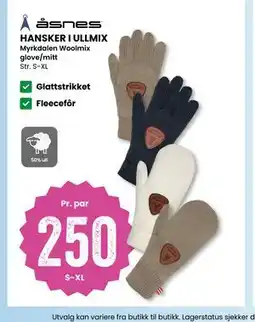 | HANSKER I ULLMIX 1 stk | Sport Outlet | 250,00 kr | 09 januar 2026 | 01 februar 2026 | |||