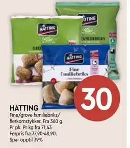 | HATTING HAVRESTYKKER/BRØD 420-700 g | Coop Mega | 29,90 kr | 07 april 2026 | 11 april 2026 | |||