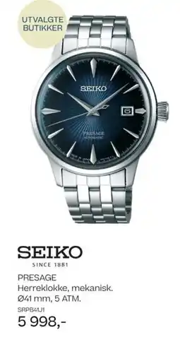 | Seiko presage herreklokke, mekanisk. 041 mm, 5 atm. | Bjørklund | 5 998,00 kr | 20 januar 2026 | 15 februar 2026 | |||