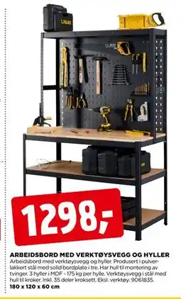 | Arbeidsbord med verktøysvegg og hyller | jem & fix | 1 799,00 kr | 27 august 2023 | 02 september 2023 | |||