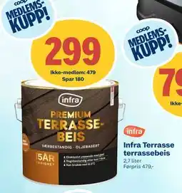 | Infra 3 år terrassebeis 2,7 liter | Coop Obs | 239,00 kr | 29 mars 2026 | 11 april 2026 | |||