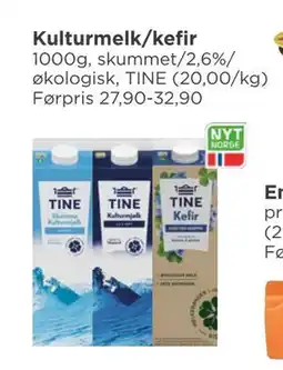 | TINE Kefir 1 kg | Kiwi | 29,90 kr | 13 oktober 2025 | 19 oktober 2025 |