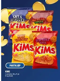 | 5 | KIMS SNACKS CHIPS/TOTENFLAK SALTA 160 g | Coop Mega | 29,90 kr | 05 januar 2026 | 10 januar 2026 | Se tilbudet |