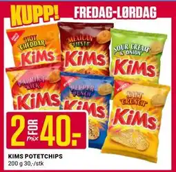 | 1 | KIMS POTETCHIPS 2 x 200 g | Europris | 40,00 kr | 30 januar 2026 | 31 januar 2026 | Se tilbudet | |||