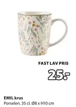 | 1 | EMIL krus 1 stk | JYSK | 25,00 kr | 02 januar 2026 | 10 januar 2026 | Se tilbudet | |||