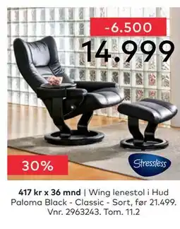 | 1 | Wing lenestol 1 stk | Skeidar | 21 499,00 kr | 14 999,00 kr | Spar 6500.00 kr. | 19 januar 2026 | 11 februar 2026 | Se tilbudet | |