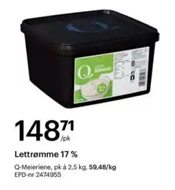 | Q-Meieriene Lettrømme 17% 2,5 kg | Storcash | 149,71 kr | 12 januar 2026 | 07 februar 2026 | |||