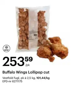 | Buffalo Wings Lollipop cut 2,5 kg | Storcash | 253,59 kr | 13 april 2026 | 09 mai 2026 | |||