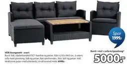 | VEN loungesett - svart 1 stk | JYSK | 6 999,00 kr | 5 000,00 kr | 1 999,00 kr Rabatt | 13 april 2026 | 18 april 2026 | |