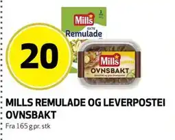 | MILLS REMULADE OG LEVERPOSTEI OVNSBAKT 165 g | Bunnpris | 20,00 kr | 07 april 2026 | 12 april 2026 | |||