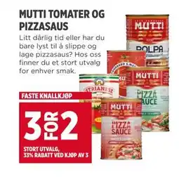 | MUTTI POLPA KNUSTE TOMATER, NOK 50 | Coop Prix | 50,00 kr | 29 september 2025 | 26 oktober 2025 | |||