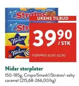 | Nidar sjokolader 150-200 g | Nærbutikken | 61,90 kr | -40% | 15 desember 2025 | 20 desember 2025 | ||