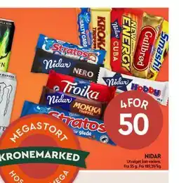 | 1 | NIDAR 4 x 35 g | Coop Mega | 50,00 kr | 20 april 2026 | 25 april 2026 | Se tilbudet | |||