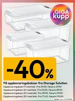 | Oppbevaringsbokser 50 deler, NOK 149 | Gigaboks | 149,00 kr | 18 august 2025 | 23 august 2025 | |||