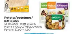 | Poteter/potetmos/ pastasaus 1 stk | Meny | 37,90 kr | 30,00 kr | 7,90 kr Rabatt | 12 januar 2026 | 17 januar 2026 | |
