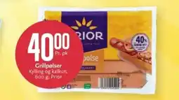 | 1 | PRIOR Grillpølser 600 g | CC Mat | 40,00 kr | 01 mars 2026 | 07 mars 2026 | Se tilbudet | |||
