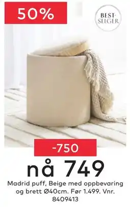 | 1 | Madrid puff 1 stk | Skeidar | 1 499,00 kr | 749,00 kr | 750,00 kr Rabatt | 16 mars 2026 | 05 april 2026 | Se tilbudet | |