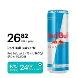 Storcash Red Bull Sukkerfri tilbudRed Bull Sukkerfri 473 mlStorcash26,82 kr24,67 kr2,15 kr Rabatt13 april 202609 mai 2026