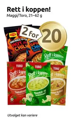 | 4 | TORO RETT I KOPPEN KOPP 53 g | Coop Mega | 20,00 kr | 13 april 2026 | 18 april 2026 | Se tilbudet | |||