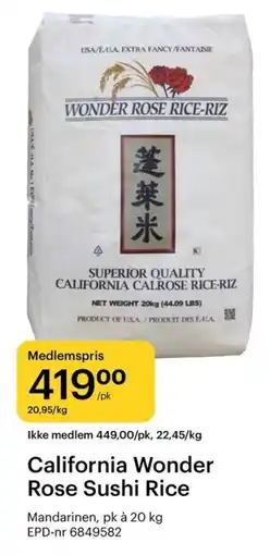 | 2 | California Wonder Rose Sushi Rice 20 kg | Storcash | 419,00 kr | 12 januar 2026 | 07 februar 2026 | Se tilbudet | |||