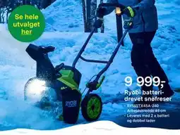 | Ryobi batteridrevet snøfreser RY18STX45A-240, NOK 9999 | Felleskjøpet | 9 999,00 kr | 01 desember 2025 | 14 desember 2025 | |||