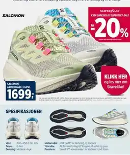 Sport 1 SALOMON AERO BLAZE 3 GRVL GTX tilbudSALOMON AERO BLAZE 3 GRVL GTX 1 stkSport 11 899,00 kr15 mars 202604 april 2026