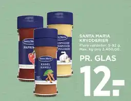 | 1 | Santa maria krydderier 5-92 g. | Meny | 12,00 kr | 24 april 2026 | 30 april 2026 | Se tilbudet | |||