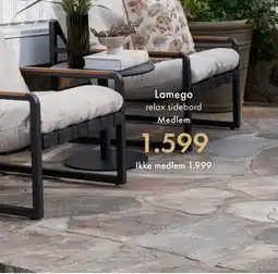 | Lamego relax sidebord 1 stk | Fagmøbler | 1 999,00 kr | 01 april 2026 | 30 september 2026 | |||