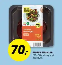 | 3 | STORFE STRIMLER 250 g | Bunnpris | 70,00 kr | 23 februar 2026 | 01 mars 2026 | Se tilbudet | |||