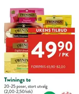 | 6 | Twinings te 20-25 stk | Meny | 65,90 kr | 49,90 kr | 16,00 kr Rabatt | 09 februar 2026 | 11 februar 2026 | Se tilbudet | |