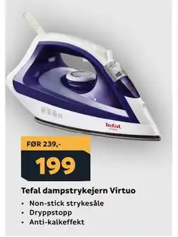| Tefal dampstrykejern Virtuo 1 stk | Megaflis | 239,00 kr | 199,00 kr | 40,00 kr Rabatt | 09 april 2026 | 26 april 2026 | |