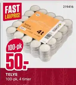 | 4 | Telys av parafin, 50-pk. | Biltema | 29,90 kr | 22 oktober 2025 | 31 desember 2025 | Se tilbudet | |||
