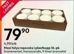 Gigaboks Maxi telys rapsvoks i plastkopp 16-pk tilbud