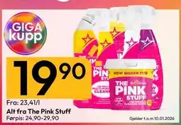 | Alt fra The Pink Stuff, NOK 19.9 | Gigaboks | 19,90 kr | 13 oktober 2025 | 18 oktober 2025 | |||