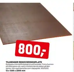 | TILHENGER RENOVERINGSPLATE 12 MM | jem & fix | 600,00 kr | 24 august 2025 | 06 september 2025 | |||